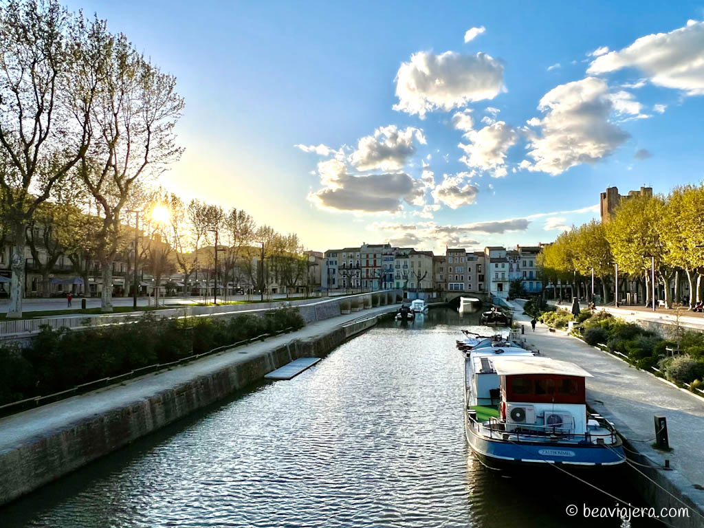 Pero el rincón de la ciudad que más me gusta es el canal de la Robine que une a la altura de Narbona el río Aude con el Mediterráneo. En el siglo XVII abrieron este canal para asegurar que las embarcaciones tuvieran salida al mar. Hoy es posible alquilar barcos para realizar los 32 kilómetros de trayecto, eso si, salvando las trece exclusas que se encuentran desde la ciudad hasta llegar al mar.