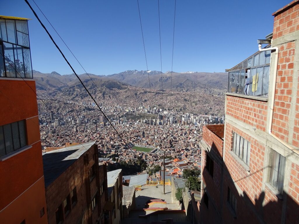 Como he dicho antes, la ciudad está construida en pendiente, por lo que uno de los transportes públicos de la ciudad es el teleférico y es interesante subir a uno de ellos hasta El Alto y desde allí observar las vistas de la ciudad.
