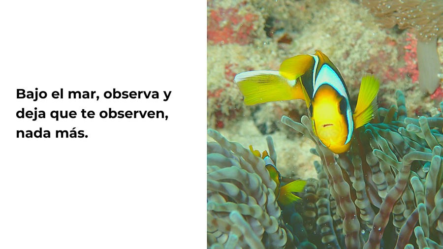 Si buceas, como es mi caso: no toques nada, ya no sólo por los animales, sino por ti… El mar está lleno de cosas preciosas pero venenosas… Y sobre todo, deja tranquilas a las tortugas y los corales.